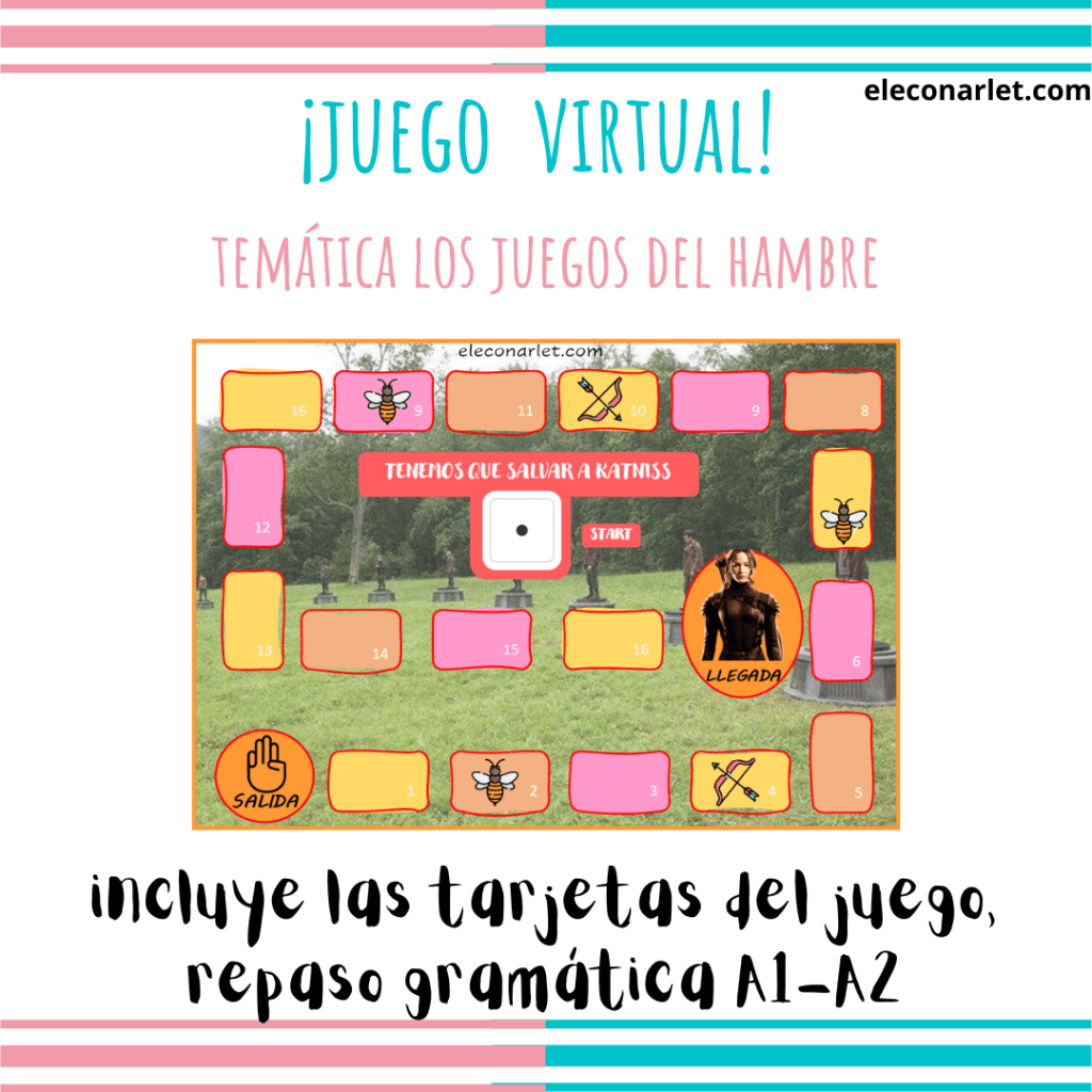 Este juego con temática de los juegos del hambre es ideal para la clase de español o de ELE porque hace un repaso de la gramática nivel A1-A2 de manera muy divertida.