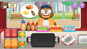 -El estudiante controla tu pantalla y empieza a jugar mientras creáis frases en español (si no puede controlar tu pantalla puedes hacerlo tú por él). Podéis usar frases tipo: »Primero tostamos el pan», »después cortamos los tomates» etc etc. En este enlace tienes un montón de recetas, yo he usado la de la pizza y la hamburguesa: Página web que tiene juegos para cocinar: https://poki.com/en/food